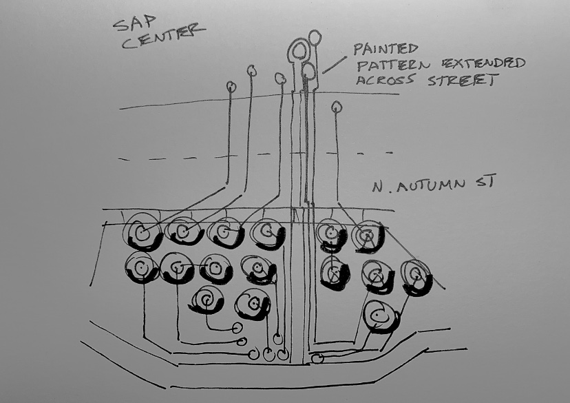 For use in my studio project, I thought the issue of connective paths that bleed out of the space was a very interesting idea, I plan to use my paving pattern design to help increase connectivity between the SAP center and my site.